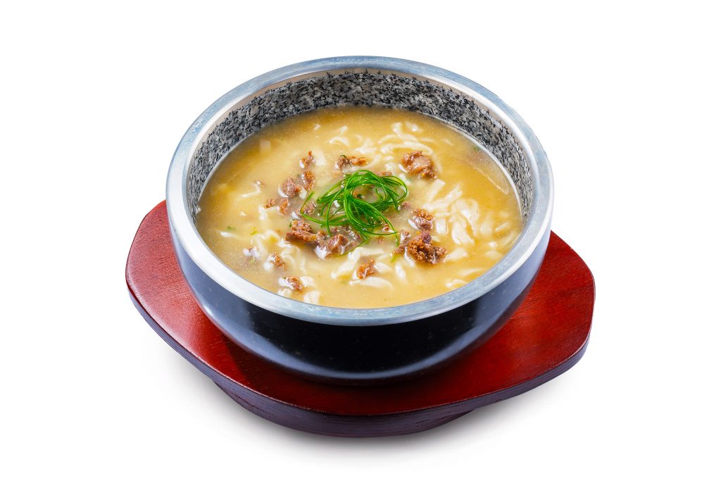 Slow-cooked Lamb Broth, deliciously combined with Homemade Flat Noodle & Spring Greens